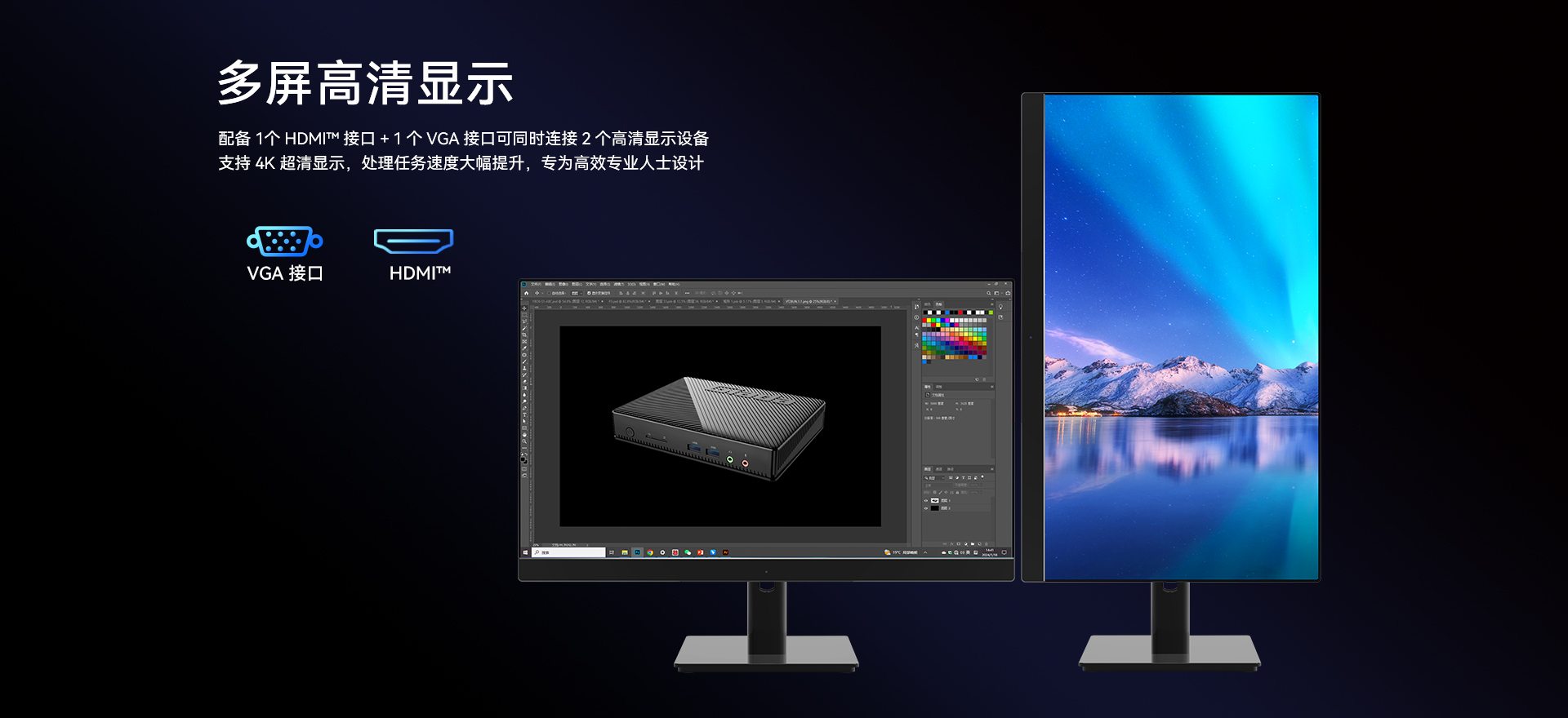 1 x HDMI,1xVGA双视频接口输出