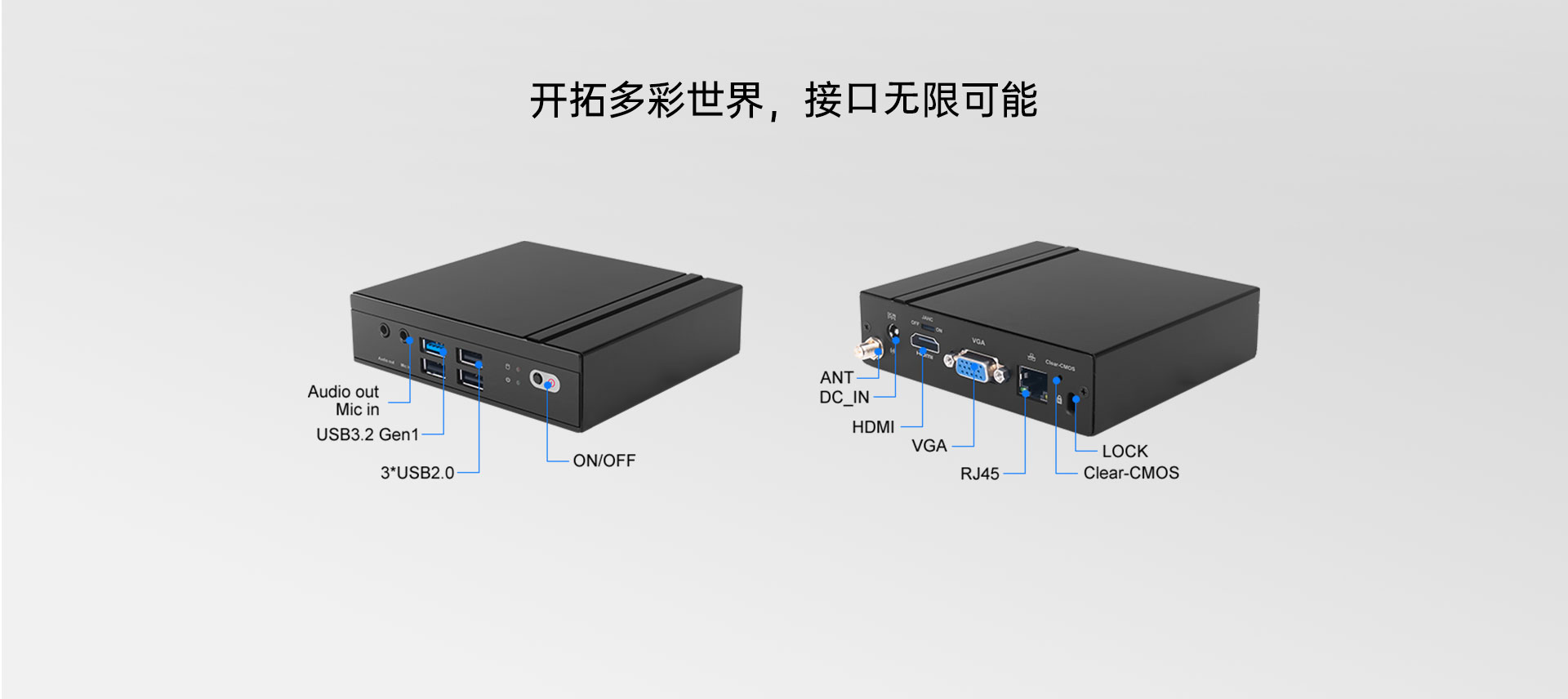 支持1 x RJ45,1x 半高Mini-PCIe扩展WiFi/BT/3G