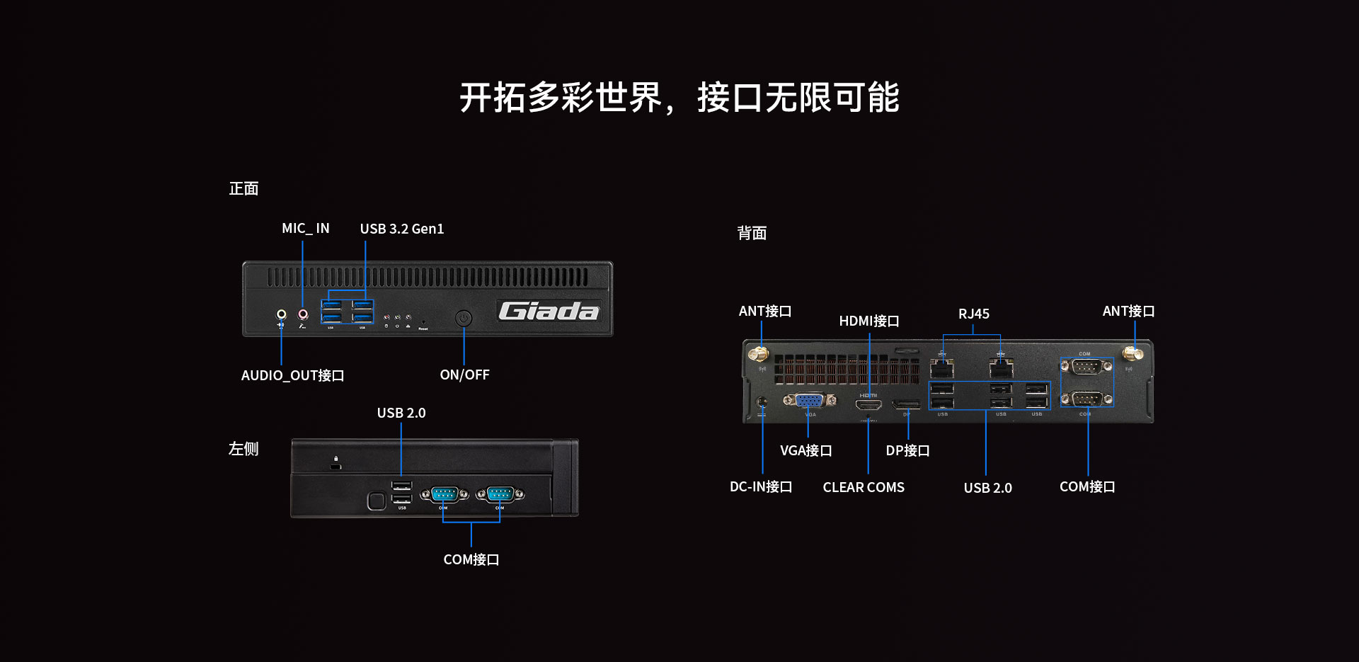 支持1 x VGA,1 x HDMI,1 x DP,支持4K视频输出